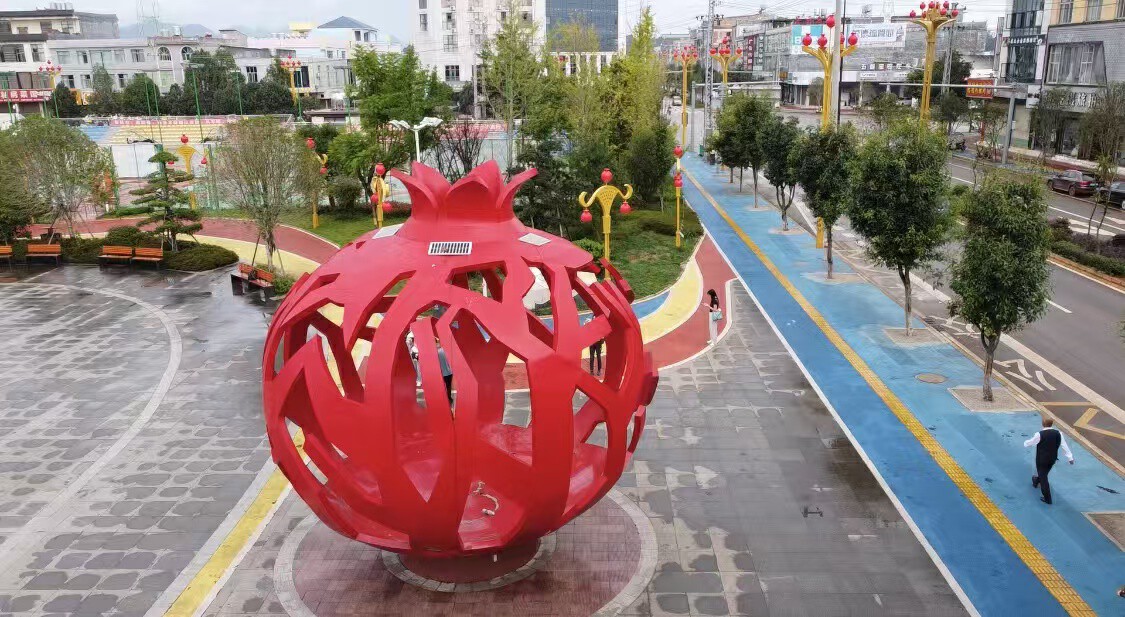 从空中俯瞰“石榴红”广场,整个场地呈现出红彤彤的石榴轮廓。清晨或黄昏时分,当镜头拉近,广场上打篮球、跑步、散步、健身的人群越来越多;广场旁汇聚回、壮、彝等各色民族美食的夜市街,也会随着夜幕降临升腾起烟火气。“去年在广场举办‘红石榴杯’篮球赛的时候,全州8县(市)的球队都来参加,1000多名群众观赛。”平远镇副镇长陈勇介绍,“石榴红”的内涵已经浸润到集镇建设、群众生活的角角落落。