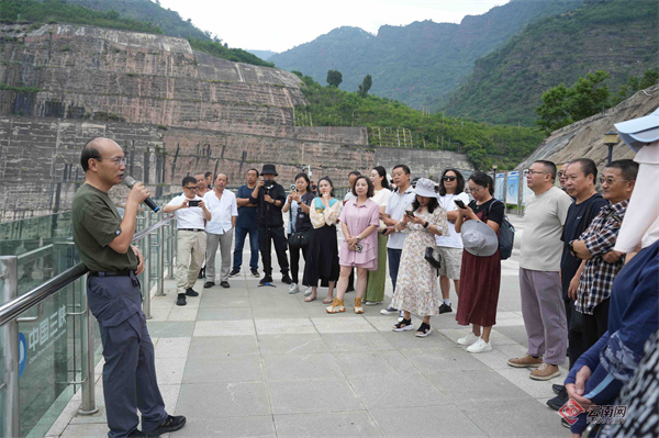 站在马脖子观景台,近距离目睹白鹤滩水电站的真容,讲解员对白鹤滩水电站建设历程的讲解回荡在耳边,碧水蓝天映衬着在场的每一位采风团成员对于这个大国重器的钦佩。“白鹤滩水电站工程非常了不起,它不仅工程巨大,雄伟壮观,它也是人类科学上的一个奇迹,是人与自然和谐的一个典范。”昭阳区教育文联主席、中国散文家协会会员周远清在看到白鹤滩的壮观景象后说道。