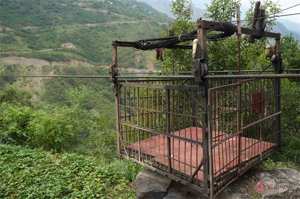 两根光滑笔直的钢缆,左右两边以及上面固定好的锃亮的滑轮,土基房里搭建的机油发电机,一个能承载至多8人的钢笼,构成了这样一个古早版“缆车”。“以前巧家客流量最大的溜索有11座,鹦哥溜索就是其中一座,春运期间甚至一天可以乘坐上千人。”在巧家县茂租镇宣传委员罗光辉的眼中,鹦哥溜索承载了很多人的时代记忆。