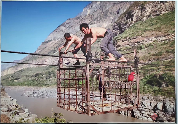 壁立千仞,激流汹涌。奔流的金沙江水涌入云南巧家县茂租镇与四川凉山布拖县接壤的V型山谷地带,形成山高、壁绝、急流、滩险的鹦哥渡。在悬崖绝壁的深深峡谷之上,被古人称为“撞”的溜索,是昭通市巧家县茂租镇鹦哥村村民们长期以来,赖以生存的交通工具。江水湍急,在江风怒号的高距离运输中,每个坐上溜索的人,心都提到了嗓子眼。