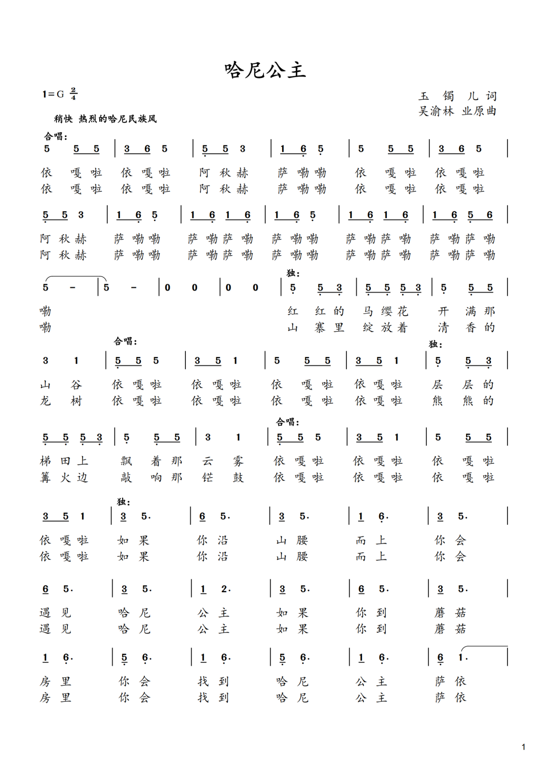 吴渝林和业原老师的音乐,旋律悠扬动听,节奏明快而富有韵律,将哈尼族的音乐元素与现代的编曲手法完美融合,既保留了民族特色,又具有强烈的时尚感。男女两位歌手的嗓音清澈动人,情感真挚,将歌曲中蕴含的对哈尼公主的赞美与敬爱之情表达得淋漓尽致。