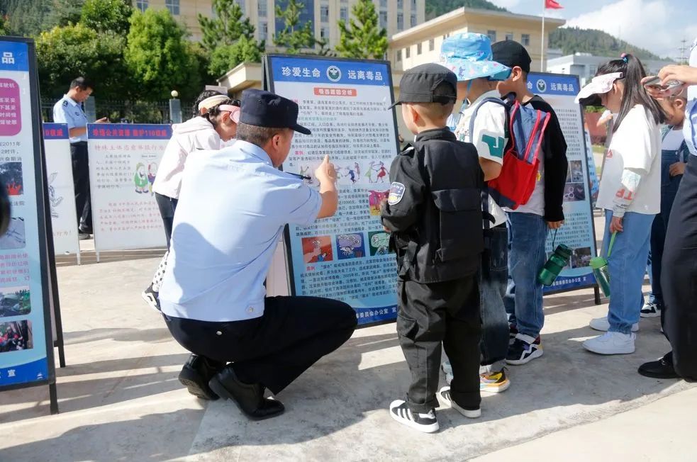 今年警营开放日,王长明为参加活动的孩子讲解禁毒知识