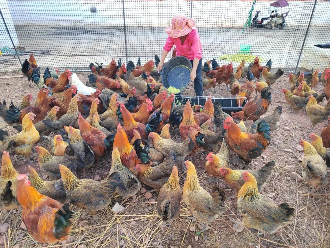 社员在喂养跑山鸡