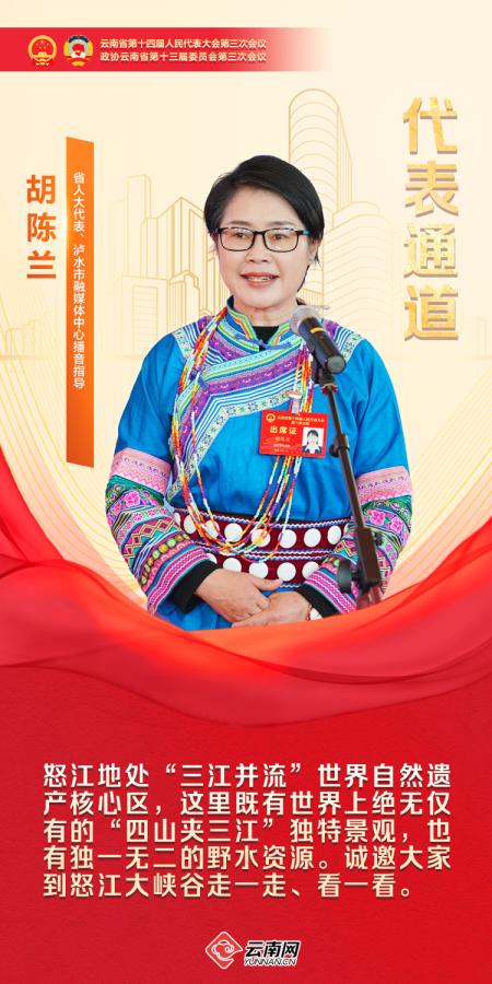 1月19日,云南省第十四届人民代表大会第三次会议的第一场“代表通道”集中采访在海埂会堂举行。现场,省人大代表、泸水市融媒体中心播音指导胡陈兰分享了怒江州两位护林员的故事。