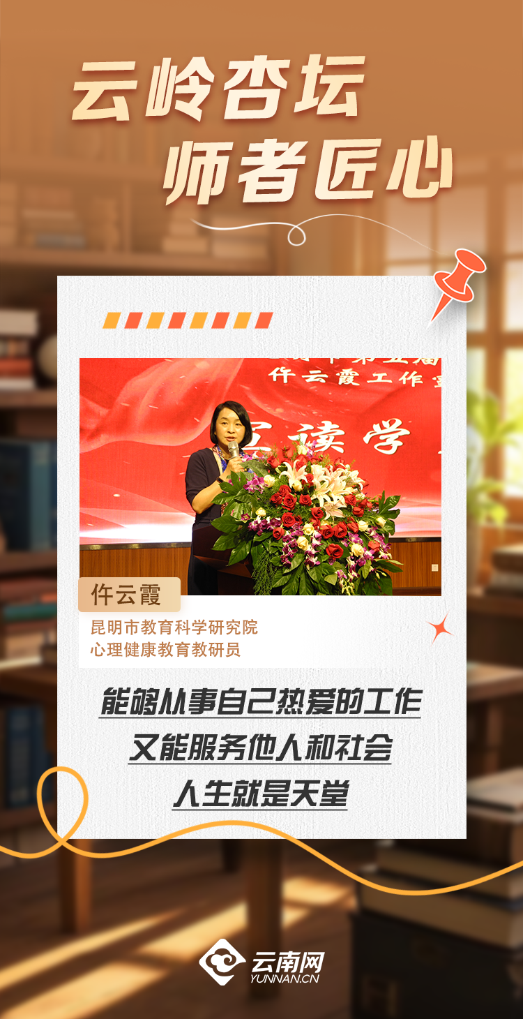 29年来,仵云霞始终致力于提升教师与学生的心理健康水平,在全国各地开展师生心理健康教育及家长讲座,内容涵盖培养积极心态、学校心理危机管理、预防职业倦怠、情绪管理、生涯规划、考前心理调适、新生适应等多个方面。她曾多次受邀到各学校进行专题培训,并以真实的案例组织互动讨论,引导师生认识情绪管理的重要性,为师生带去舒适的“心灵按摩”,积极传递心理健康自我疗愈知识。她以“守望云心”为矢志不渝的使命,在云南这片充满希望的土地上,默默耕耘,为无数师生的心灵成长倾注心血,奉献力量。