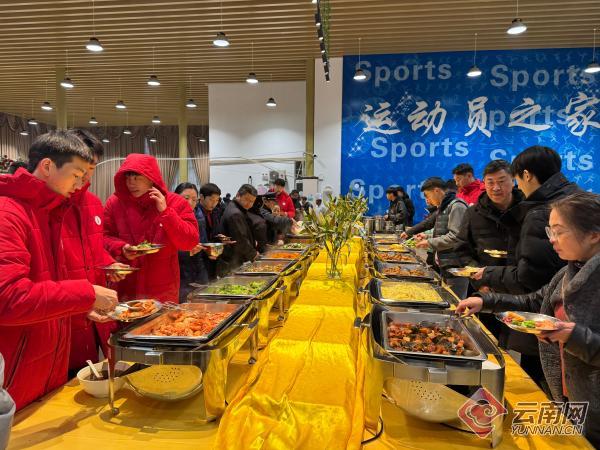 大年三十,海埂基地运动员食堂里热气腾腾、欢声笑语,来自五湖四海的运动队和云南省级运动队300多名运动员一起过了一个热闹又温暖的除夕夜。2025年是全运会年,坚守冬训一线,“留在云南过年”是许多运动队蛇年新春的首个备战计划。虽然不能和家人团聚,但云南气候宜人、设施完备、服务保障周到,每一位在云南过年的运动员都在高原感受到了家的温暖。
