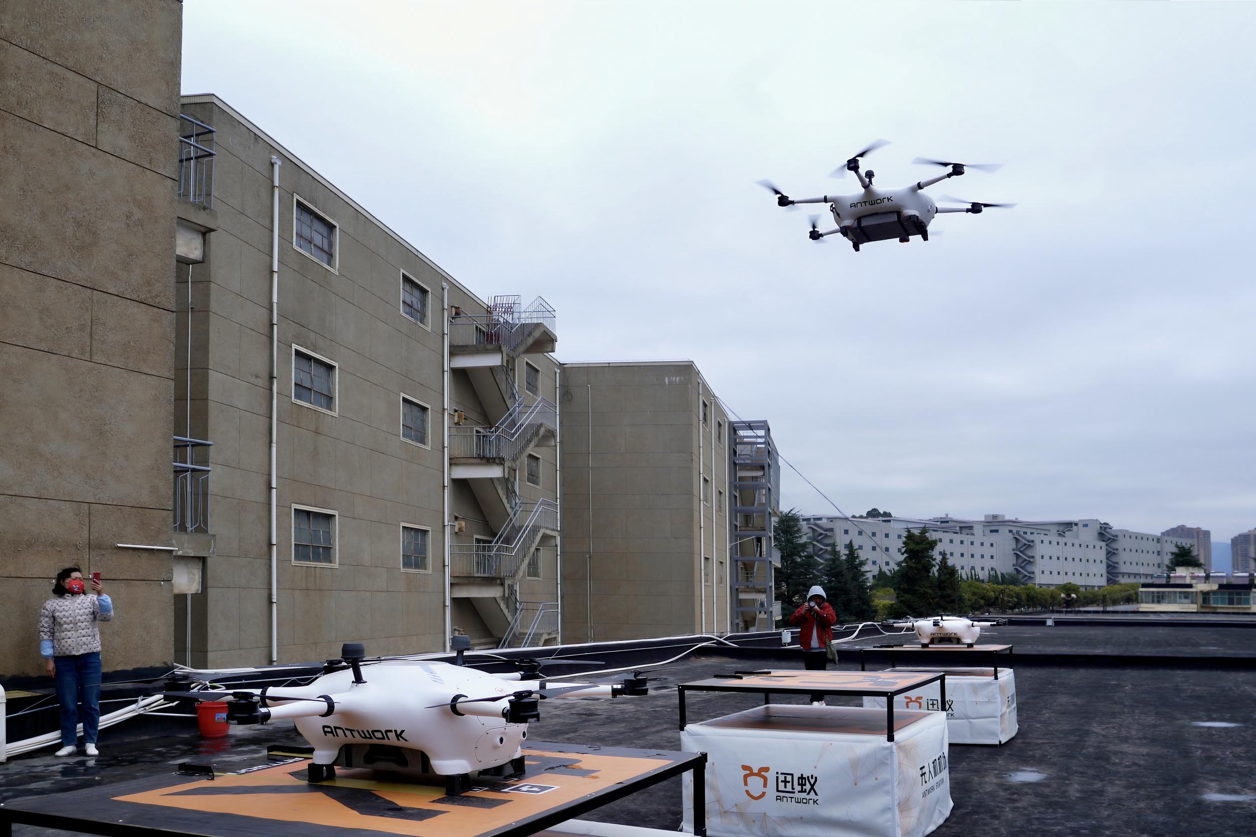 “目前的业务聚焦在汽车维修及配件行业。我们采用轴幅式城市物流网络模型进行布局,搭建汽车配件前置共享仓,辐射半径5公里内的汽车修理厂,通过迅蚁的物流无人机在城市真实高度80-150米空域进行飞行配送,将以前1小时以上的配送时间缩短至5分钟左右。”秒送(云南)科技有限公司翟昊表示。