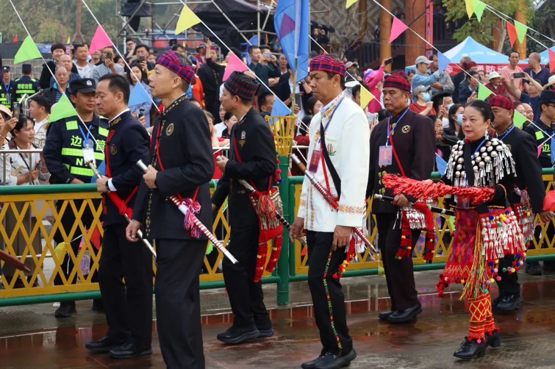 在2025年瑞丽市目瑙纵歌活动中,有一群特殊客人,他们来自邻邦缅甸,身着传统民族服饰,跟随“瑙双”“瑙巴”的领舞步伐,融入这片跨越国界的文化海洋。