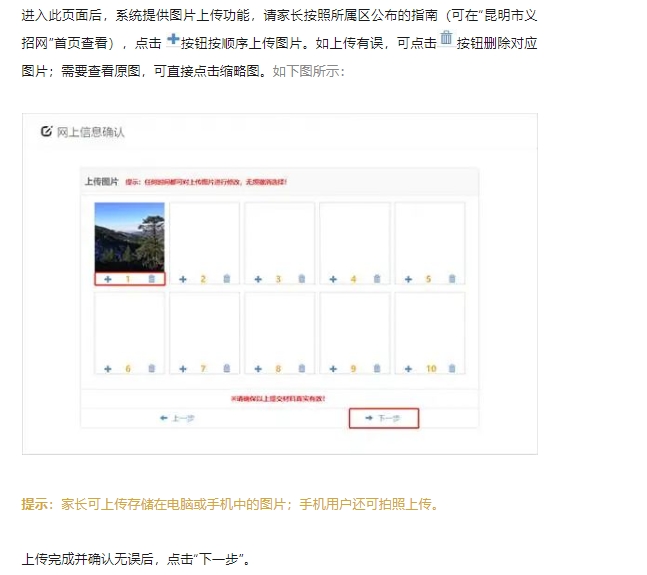 二、确认方式4月1日至9日,家长登录“昆明市义招网”(网址:www.kmyzw.cn,用手机或电脑登录均可),点击“招生信息确认”,按系统提示操作。请家长认真核对相关信息,确保提供的信息真实、准确、有效。4月10日至14日,相应学校或确认点根据家长提供的信息进行审核并反馈。在此期间,请家长保持手机畅通。如有疑问或困难,可拨打对应县区电话进行咨询,也可持相关材料直接到各区服务点进行现场信息确认。