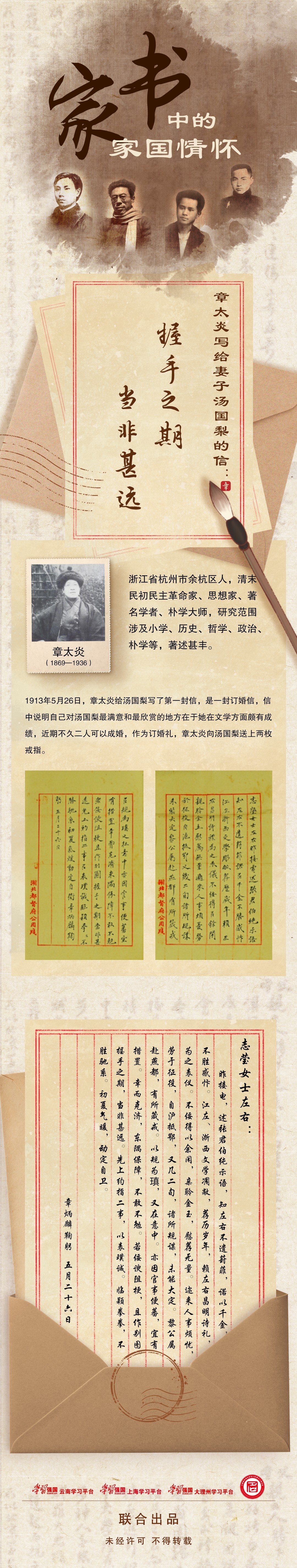 原标题:家书中的家国情怀 | 章太炎写给妻子汤国梨的信:握手之期,当非甚远