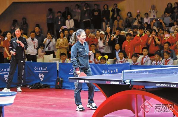 当天下午,他们来到云南师范大学呈贡校区,与在场大学生们面对面交流,分享了自己与乒乓球的故事,传递榜样的力量。