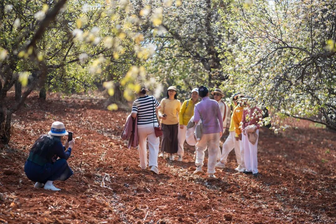 眼下,洱源县松鹤村1800多亩古梨树迎来盛花期。漫山梨花与青山村落相融,绘就了一幅“村树相依”的生态画卷。游客循香而来,穿行于梨林拍照漫步,山间笑语与落花共舞。(罗新才 李雪梅 马果清)