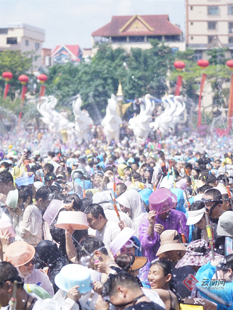 活动现场,各族群众与八方游客手持水盆、水桶、水枪等“泼水神器”,将象征吉祥如意的清水尽情挥洒。欢笑声、祝福声此起彼伏,整座城市很快沉浸在水的祝福中。从泼水广场到街头巷尾,处处可见人们以水传情、以水会友的温馨画面。