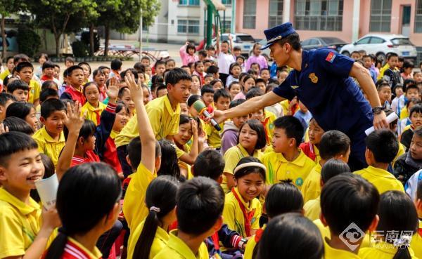 4月15日,在思茅区,消防员为学生讲解安全常识。郭元丰 摄