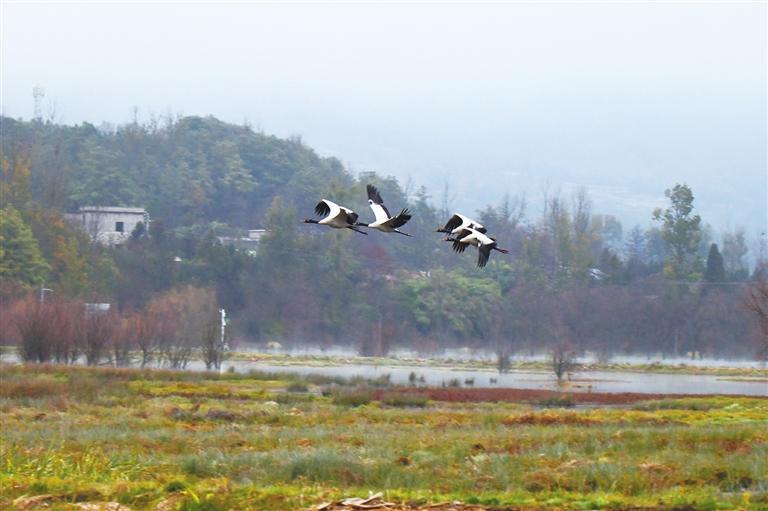 原标题:会泽黑颈鹤北迁近尾声 越冬候鸟数超往年