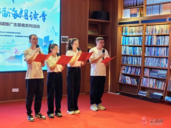 云南网讯(记者 龙彦)“五百里滇池奔来眼底,披襟岸帻,喜茫茫空阔无边……”随着琅琅读书声响起,4月18日,“书香彩云南・福海朗读季”——昆明市西山区福海街道办事处第二届全民阅读推广志愿者系列活动在南亚风情第一城春晓书店内拉开阅读帷幕。