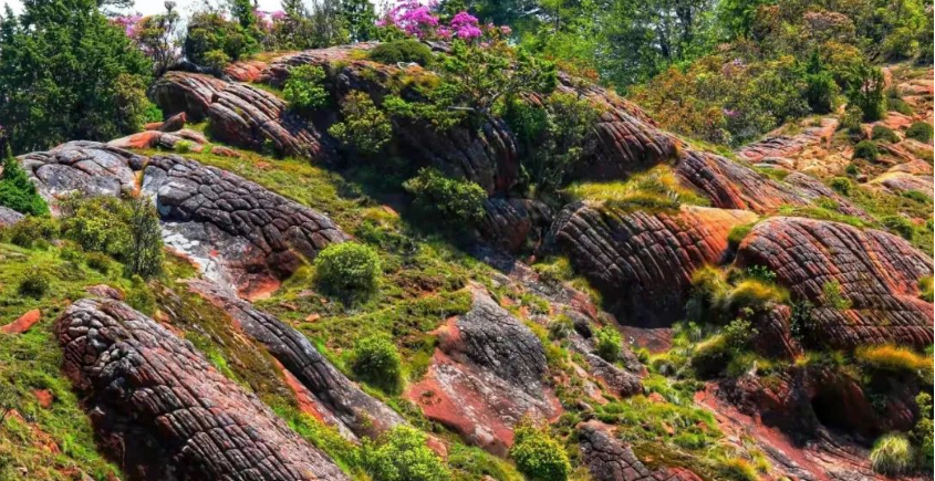在海拔3000多米的丹霞地貌区,大羊场至罗古箐的24公里徒步路线如绸带般蜿蜒。为推动徒步线路开发,“墅家·吾乡”利用社交媒体和旅游平台进行线上推广,推出“住宿+徒步”旅行套餐,打造“网红”旅游线路,成立了国内首个“ululul轻量化徒步俱乐部”。2023年11月,众多户外品牌和资深户外玩家在兰坪罗古箐举办第一届徒步大会。首批俱乐部成员,一行30多人进行了两天一夜的“大羊场——罗古箐”徒步穿越,并伴着篝火,露营在兰坪夜空的星光之下。