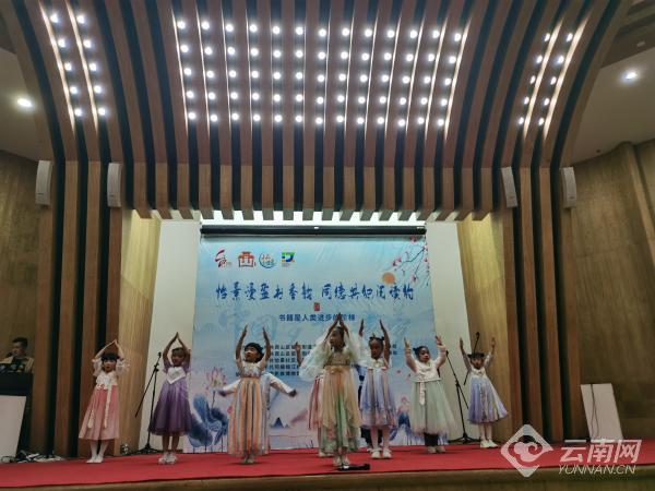 昆明市西山邦力幼儿园有限公司的小朋友们带来的手势舞“读唐诗”格外引人注目。孩子们身着整齐的服装,脸上洋溢着纯真的笑容。在轻柔的音乐声中,他们用稚嫩的小手灵活地变换着各种动作,或模仿古人读书的姿态,或用手指描绘诗句中的场景。每一个动作都充满了童趣,将唐诗的韵味通过简单而可爱的手势展现得淋漓尽致,生动诠释了阅读从娃娃抓起的理念,也让现场观众感受到了文化的热爱。