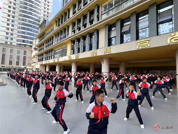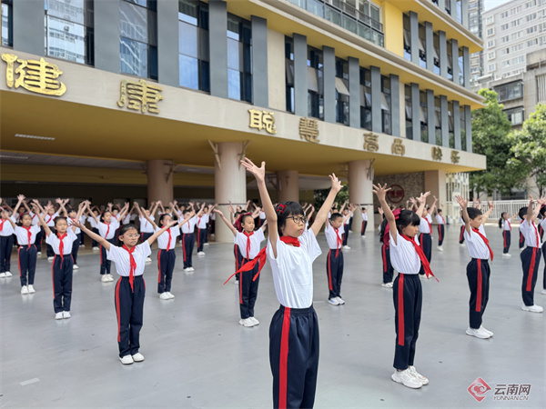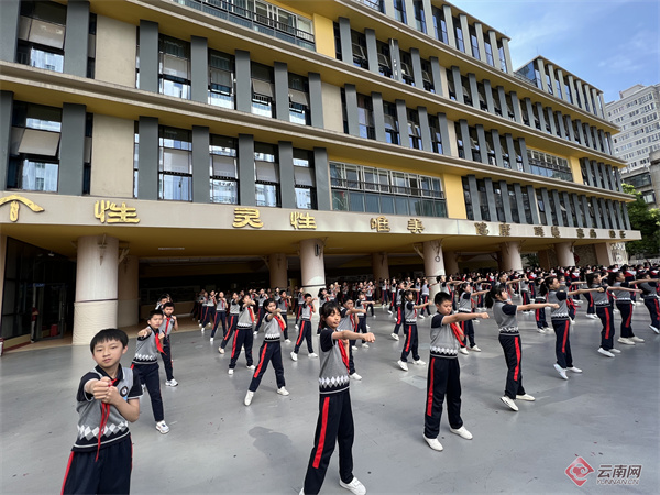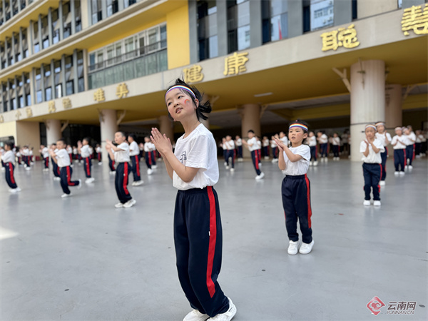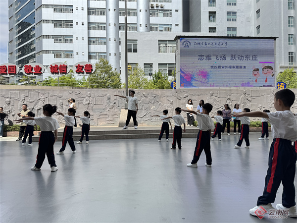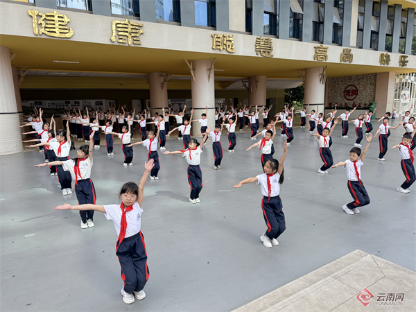 云南网讯(记者 杨苑)近日,云南省昆明市盘龙区东庄小学热闹非凡,学校以党建为引领、体育为桥梁的第四届“志雅飞扬 跃动东庄”室外操主题展演活动热烈开展。全校师生齐聚一堂,用昂扬姿态、整齐队列和有力动作,生动诠释了“阳光大课间”的内涵,践行“为党育人、为国育才”使命,掀起阳光体育运动新高潮。