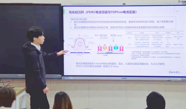 在课程研讨环节,针对“双面钝化工艺优化”“光捕获结构设计”等前沿问题,教学团队从材料性能、工艺实现路径等角度进行了交流探讨。校方表示,此类课程将实际工程项目和先进制造技术引入课堂,有助于推动科研成果应用转化,提升学生的实践能力与创新意识。