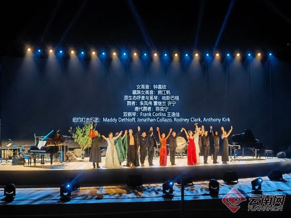 演出现场,谭盾和第十二届中国舞蹈“荷花奖”现代舞组金奖得主朱凤伟、青年舞蹈家董继兰、女高音歌唱家钟嘉欣、原生态呼麦与奚琴演奏家哈斯巴根、藏族女高音歌唱家拥江帆、唐代乐舞舞蹈家陈奕宁,钢琴家弗兰克·科利斯、顾劼亭,美国纽约打击乐团演奏家安东尼·柯克、罗德尼·克拉克、麦迪·戴斯洛夫、乔纳森·哥拉索等强大阵容的精彩献演,赢得上千名中外观众阵阵热烈掌声。