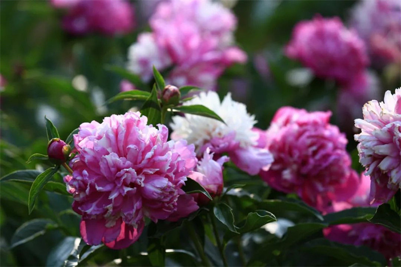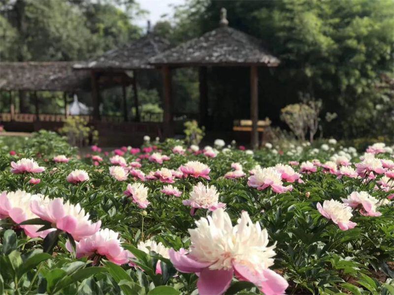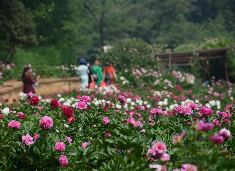 红芍药圆润明艳,粉芍药娇媚动人,白芍药亭亭玉立,色彩各异,风情万种,把狮子山装点得格外迷人。