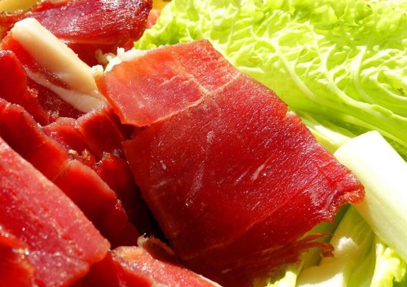 山猪火腿是武定的另一道特色美食,火腿瘦肉颜色鲜艳如火,可以直接切片生吃,香气浓郁、鲜美可口。
