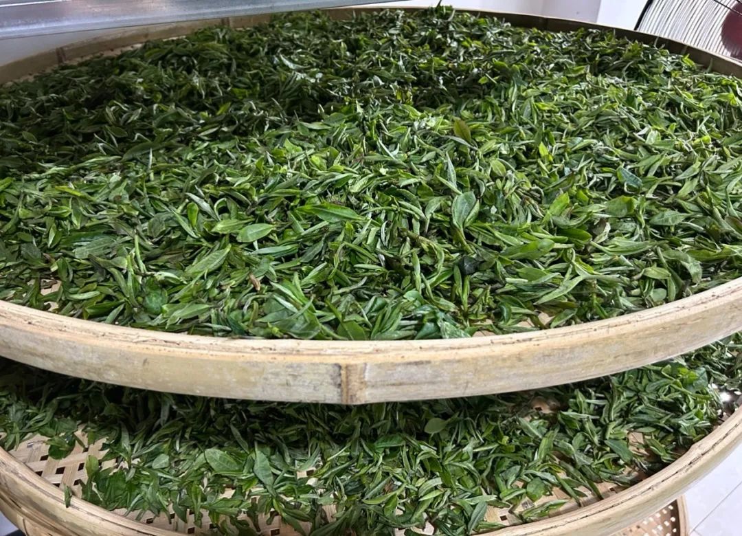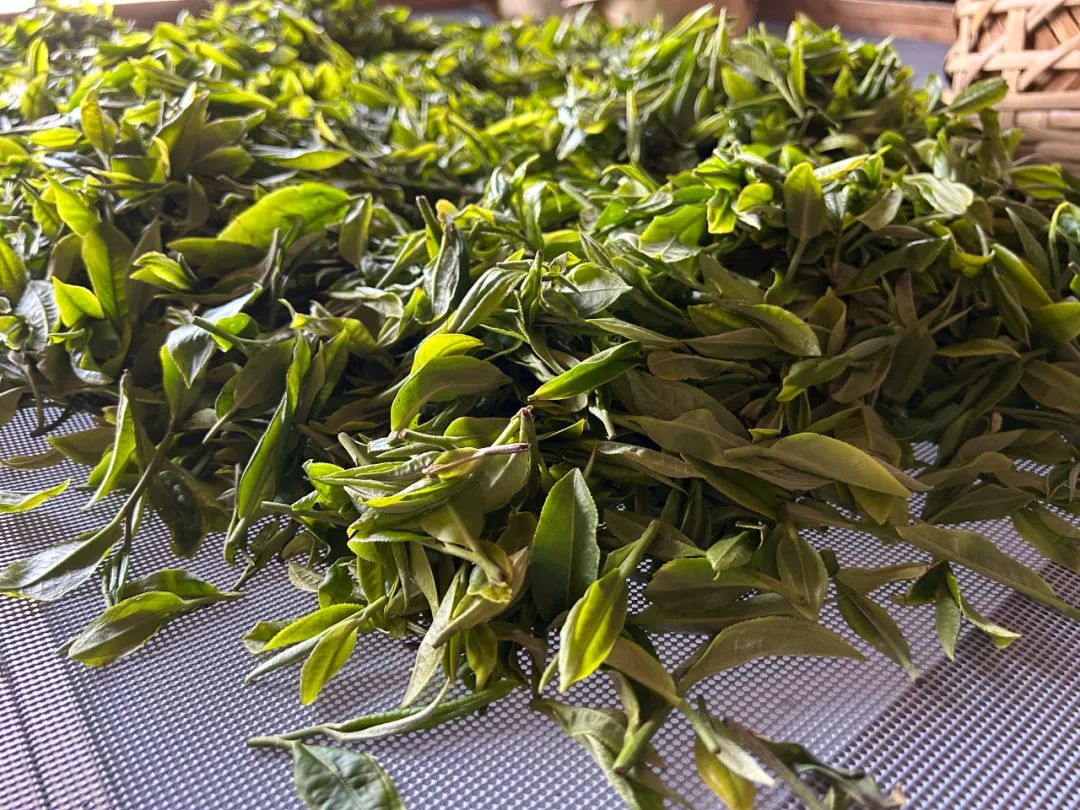 兔街镇半坡村刚采摘来正在摊晾的春茶