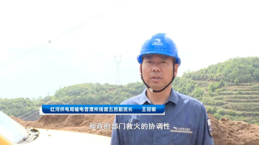 演练模拟旧城镇马曹冲电网运行片区重点区位在连晴高温天气下,片区突发山火,对辖区内的电网和人民财产安全产生威胁。接到指令后,红河泸西供电局与当地政府联同,赶赴火点进行处置。