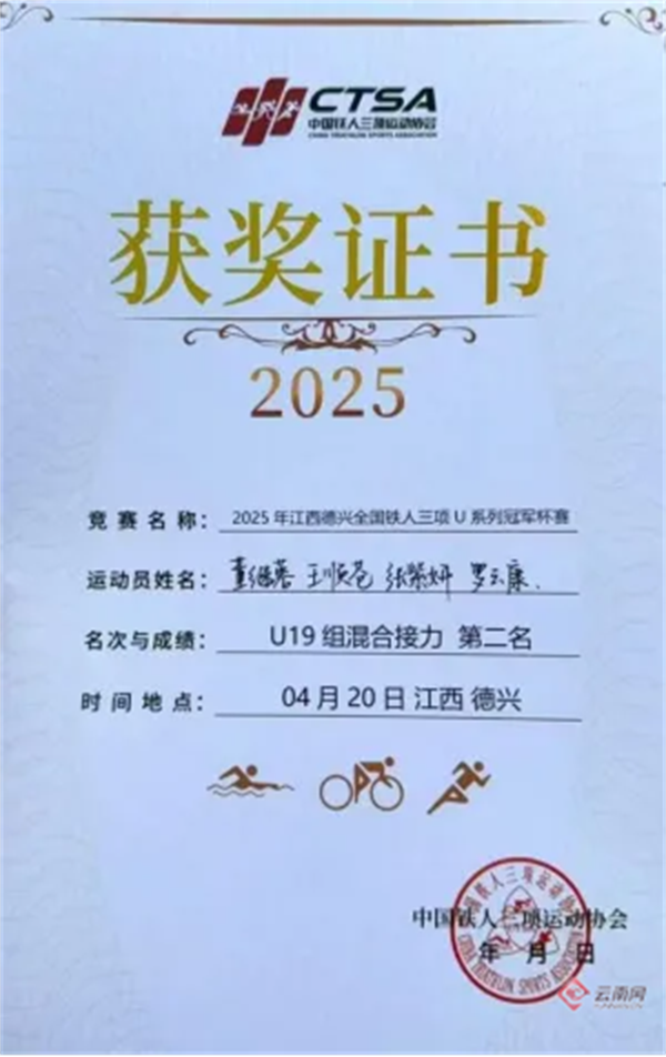来自德宏州少体校输送的运动员表现亮眼。刚满18岁的董继蓉,此前就已在U17女子组锦标赛、冠军赛中夺冠。此次U19女子组比赛,面对来自12个省(区、市)的17名强劲对手,且身体有伤的情况下,董继蓉凭借顽强的意志力,在雨中比赛实现逆转,游泳赛段起水时排第3,首个转换区后升至第2,自行车赛段结束便占据首位,跑步赛段保持领先,最终以1小时01分05秒的成绩夺冠。同样,由德宏州少体校输送的王顺苍,在U17男子组比赛中获得亚军,该组比赛中,云南队的罗云康夺冠,李岩松获季军,管苑辰获第4名,实现了U17男子组前四名全包揽。