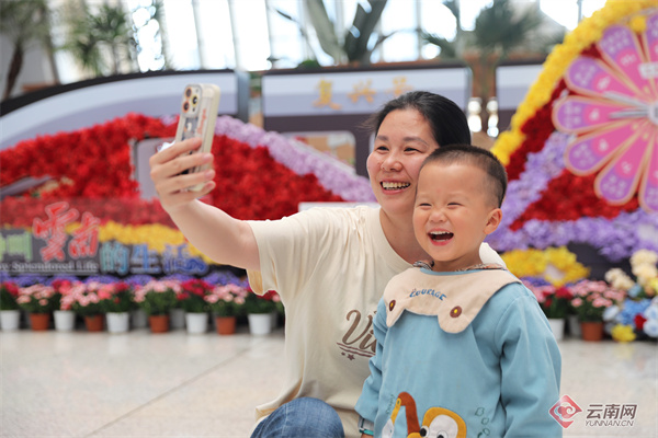 活动中,昆明南站的“鲜花会客厅”成为焦点。这是全国首个以鲜花为主题打造的候车厅,融合鲜花、绿植与复兴号动车元素的打卡点吸引众多旅客拍照留念。其中,“鲜花时钟”打卡点设计巧妙,以复兴号动车组、花瓣时钟等元素象征动车飞驰带出云南花海,时钟定格的时间正是昆明往返厦门首趟赏花之旅列车发车时间,寓意美好旅程开启。