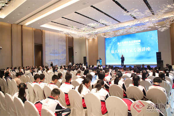 云南网讯(记者 龙彦)4月24日,在第十个“中国航天日”到来之际,由国家航天局新闻宣传办公室指导,云南省国防科技工业局主办、昆明市盘龙区人民政府承办的2025“中国航天日”科普教育系列活动在云南昆明盘龙举办。活动以“海上生明月 九天揽星河”为主题,通过院士讲堂、科普专题讲座等形式,弘扬航天精神、普及科学知识、展现中国航天辉煌成就、推动航天科技与数字经济融合。来自省、市、区相关部门的干部职工,盘龙区各学校科普教师,以及昆明市实验中学学生等300余人,通过现场参加开幕式、聆听讲座等方式,切身感受我国航天科技的蓬勃发展,燃起心中的“航天梦、强国梦”。