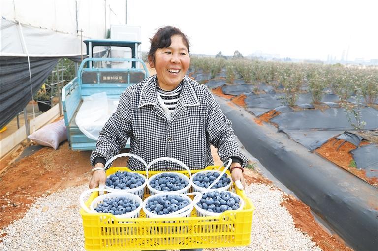 近年来,麒麟区立足生态和资源优势,把蓝莓产业作为“一县一业”“一镇一特”“一村一品”主导产业,不断推动蓝莓产业规模化、品牌化发展。该区在做大做强蓝莓产业的过程中,积极引进企业开展蓝莓产品开发和精深加工生产线建设,重点开发蓝莓果汁、果酒、果酱、果粉等特色产品,全力打造蓝莓品种研发、苗木繁育、种植示范、仓储分选、物流销售“五位一体”的蓝莓全产业链。