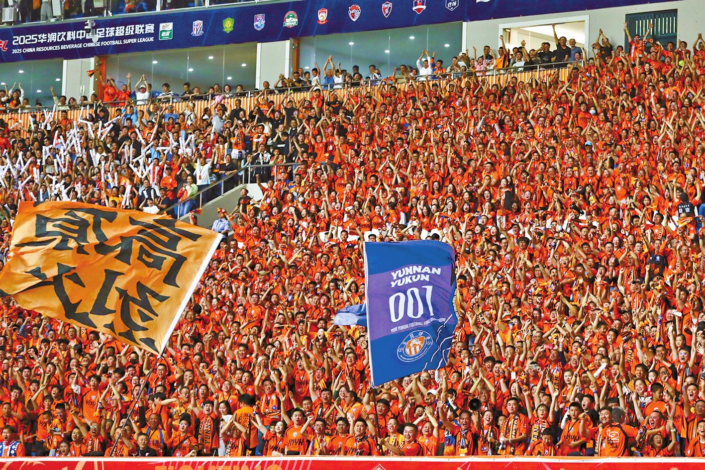 云南玉昆踢出了气势,点燃了球迷激情。记者 沈阳 摄