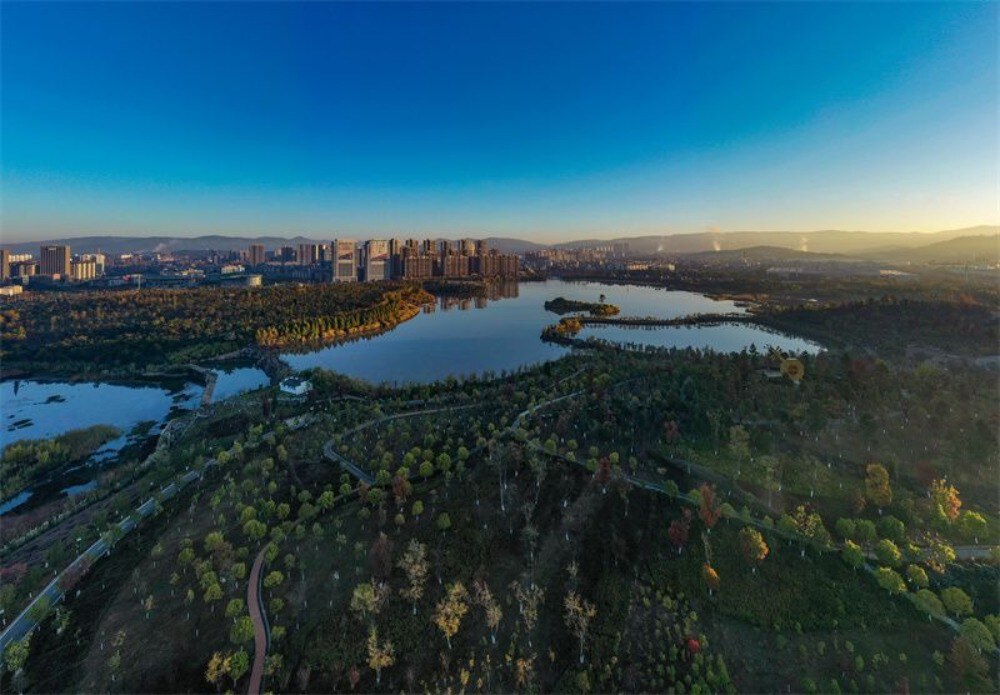 专属赛道,解锁彝海湖畔的生态画卷。清晨,从火影广场开始“漫跑”,观察城市苏醒的模样。5公里生态步道串联起“彩茶迎宾”“彝海清波”等十大文化景观,跑者可穿梭于湖光山色间,感受彝族风情与现代城市交融的独特魅力。彝海碧波荡漾,沿岸樱花、海棠、蓝花楹竞相绽放,随手一拍即是大片。彝海公园是楚雄市规模最大的城市湿地公园,总面积约1700亩,其中水域面积占40%。作为楚雄“15分钟健身圈”核心地标,已成功举办多届职工健步跑、家庭马拉松等活动,累计吸引超万人次参与。这里不仅是市民日常锻炼的“城市绿肺”,更是展示楚雄全民健身成果的主要窗口。