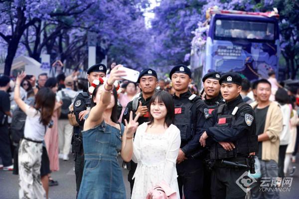 云南网讯(记者 赵岗)4月29日,记者从昆明市公安局获悉,蓝花楹正在逐步盛开,结合市民游客赏“楹”热潮,4月27日起至5月底,“守护有一种叫云南的生活”昆明公安“警景相随·平安夏楹”主题宣传活动带领市民游客见证“蓝花楹的盛大告白”。