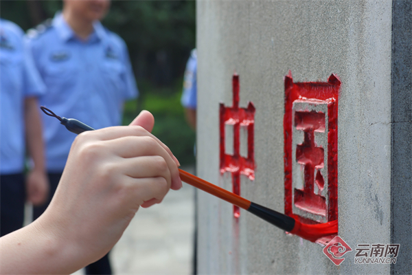“一笔一画描红的不仅是界碑上的文字,更是我们心中的责任与忠诚。”青年代表手持朱漆毛笔,俯身细致描红“中国”字样和碑体编号。