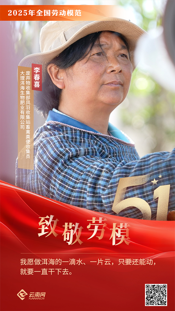 李春喜没有惊天动地的壮举,却用九年如一日的坚守,在平凡的岗位上书写了新时代最美劳动者的形象。她的双手沾满牛粪,却托起了洱海的清澈;她的身影略显佝偻,却挺立成一座精神丰碑。正如她曾说的一句话:“我愿做洱海的一滴水、一片云,只要还能动,就要一直干下去。”这份质朴而炽热的情怀,正是劳动精神最生动的诠释。