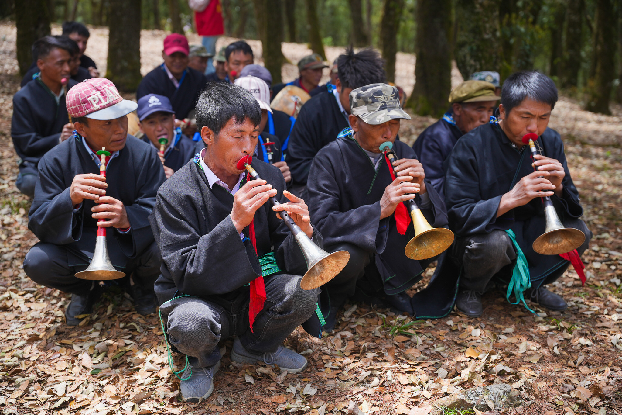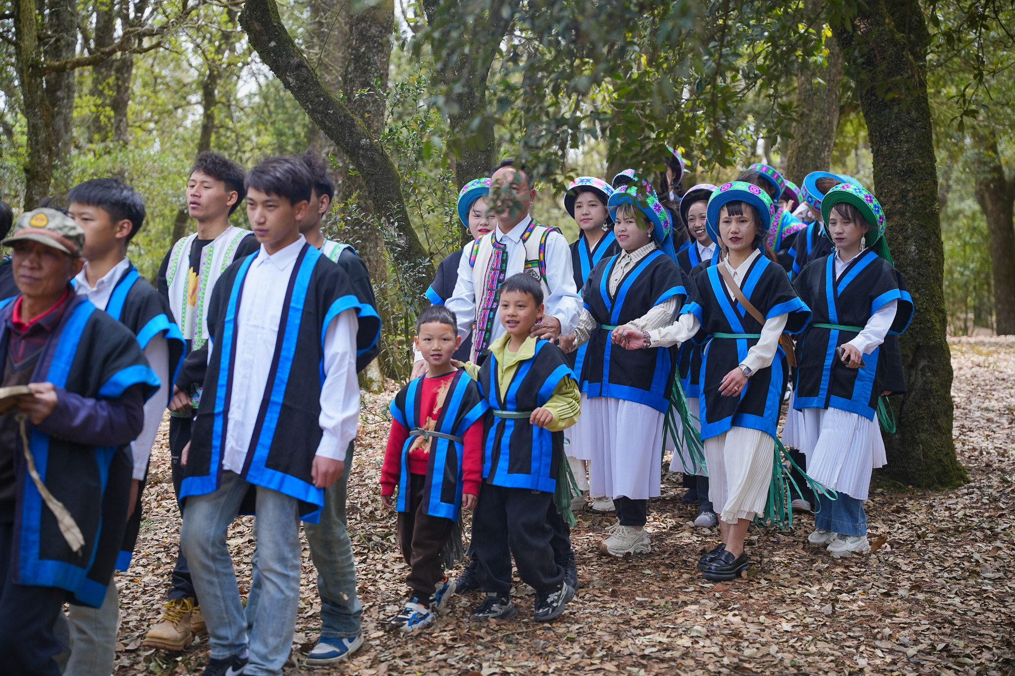当日下午1时许,密枝祈福仪式在苏撒坡村古老的密枝林举行。伴随着富有节奏感的唢呐和小鼓声,身着民族服饰的彝族同胞代表手持青松枝,祈愿风调雨顺、五谷丰登、山林安宁、人畜兴旺。这一古老仪式不仅体现了彝族人民敬畏自然、崇尚生态的传统习俗,更承载着民族文化的底蕴和传承。仪式尾声,队伍绕百年古树缓行,并播撒象征生生不息的清水,寓意着传统文化的赓续与绿色发展理念的践行。