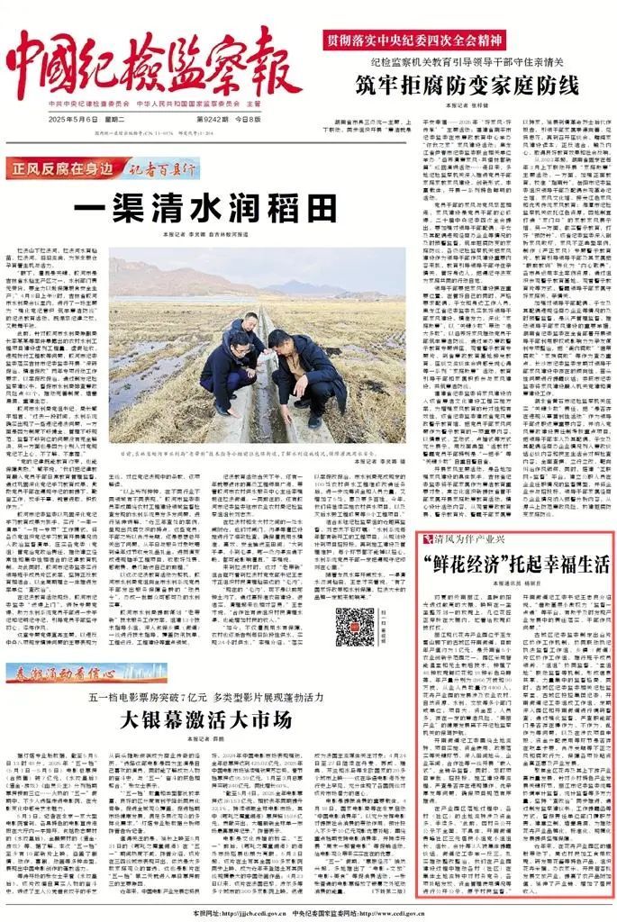 2025年5月6日,《中国纪检监察报》头版报道:“鲜花经济”托起幸福生活。