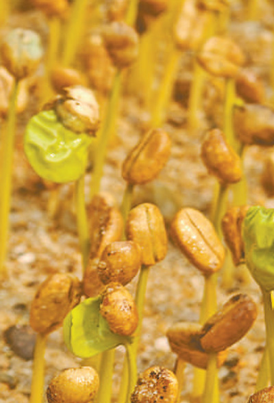 种苗繁育基地的育苗棚内,空气中蒸腾着水汽,催芽成功的咖啡苗簇拥在一起,伸展着圆润可爱的叶子。一群年轻人身着实验服,正在用湿润的沙土平整苗圃,撒下新的咖啡种子。“为产区培育咖啡苗,虽然辛苦,但这是在为咖啡产业‘打地基’。”德宏热作所研究员王静敏,是个90后“新农人”。