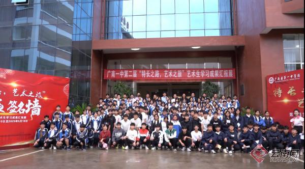 云南网讯(记者 张琦敏)笔墨寄深情,同心共汇展。近日,云南省文山壮族苗族自治州广南县第一中学校第二届美术生学习成果汇报展在该校海洋图书馆一楼展厅拉开帷幕。广南县第一中学校教师、美术特长生及各友校书画爱好者,近300人参加此次活动。