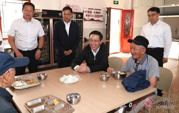 王予波在红塔区大营社区幸福食堂与老年群众交流。记者 顾彬 摄