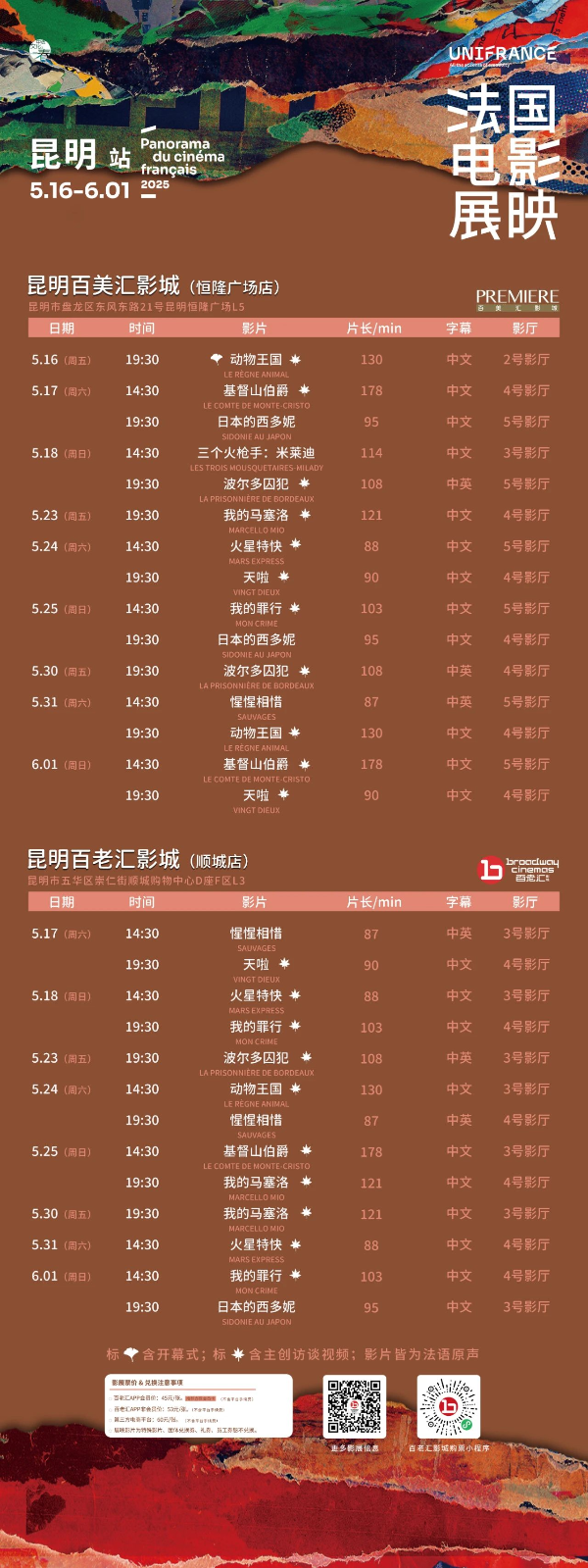 2025法国电影展映·昆明站排片
