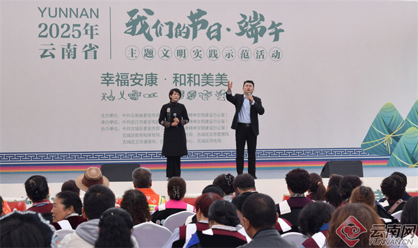 云南网讯(记者 王韵鸥 夏方海)5月27日,2025年云南省“我们的节日·端午——幸福安康 和和美美”主题文明实践示范活动在丽江市玉河广场举办。全国岗位学雷锋标兵、全国文明家庭、云南省道德模范、“云南好人”等先进典型与市民游客欢聚一堂,共度佳节,弘扬榜样力量,点亮道德之光。中共云南省委宣传部、省委文明办负责同志出席。