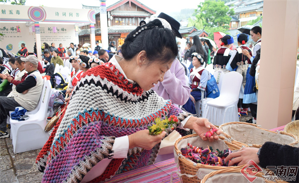 舞台周边,系列文明实践活动持续开展,把端午丰富多彩的民俗文化串联起来,吸引了不少市民游客驻足体验。趣味射“五毒”、系五彩绳、艾草花束制作、纳西族东巴文拓印,人人化身“神射手”“手工达人”,在其乐融融的氛围中感受着中国传统民俗文化的魅力。诗词问答游戏区,还设置丽江现代花卉产业园展台,以鲜切花作为回答正确的礼物,向大家传递节日温馨祝福。