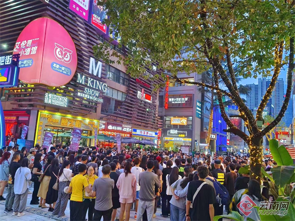 云南财经大学学生周俊杰则更偏爱云纺的夜晚,市集的烟火气、歌舞表演的活力、运动项目的激情,都让他流连忘返。他说:“晚上来云纺,可以逛市集、听音乐会、听讲座等,体验感超足,每次都有新惊喜。”