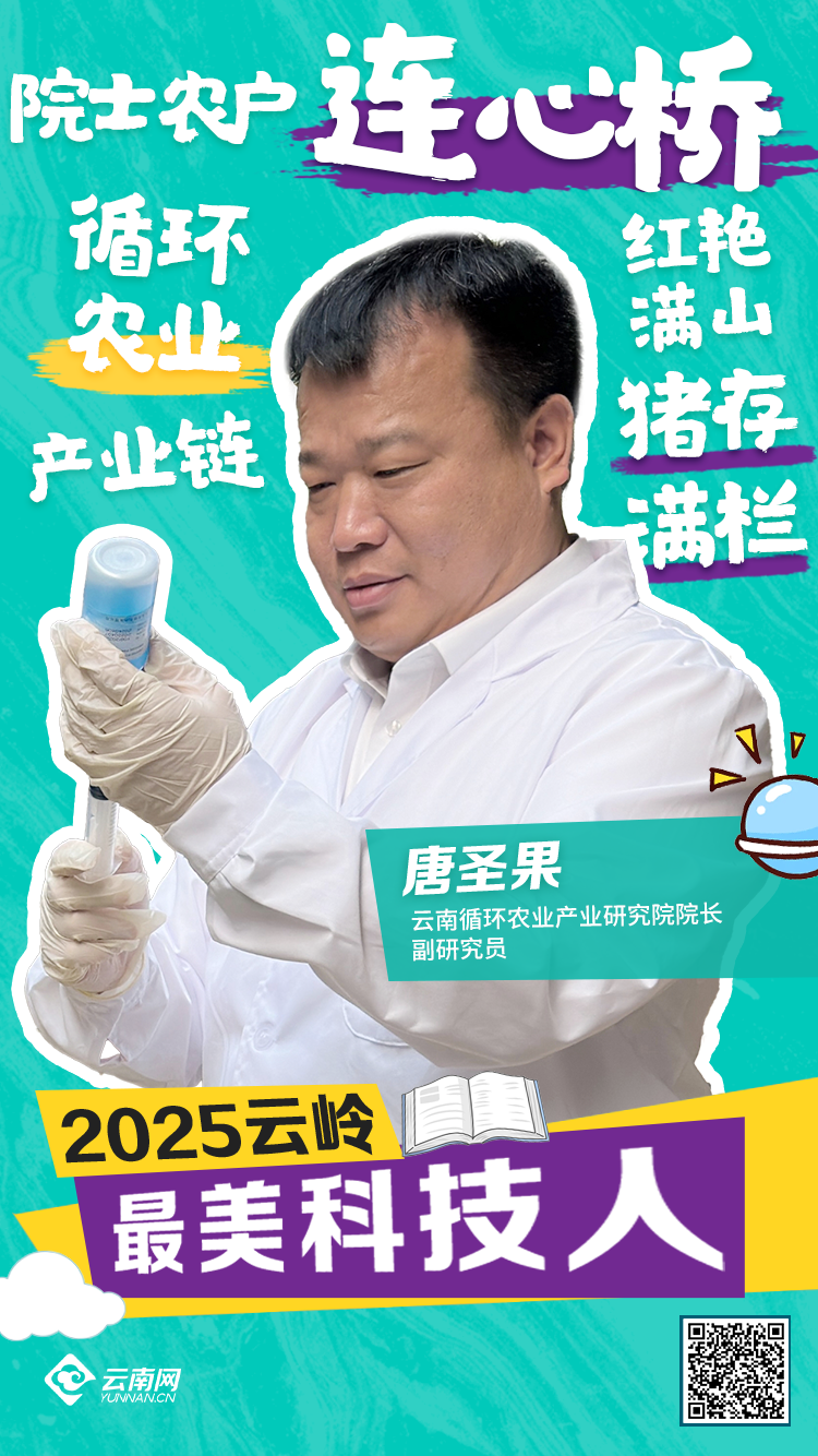 在彩云之南的红土地上,一位致力于将科技基因注入传统农业的“耕耘者”,正用创新画笔描绘着乡村振兴的新图景。他是2025年“云岭最美科技人”、云南循环农业产业研究院院长唐圣果,以院士团队为引擎,让辣椒、黑猪、普洱茶等高原特色产业破茧成蝶,在科技与生态的双向奔赴中,书写着“藏粮于技”的时代答卷。
