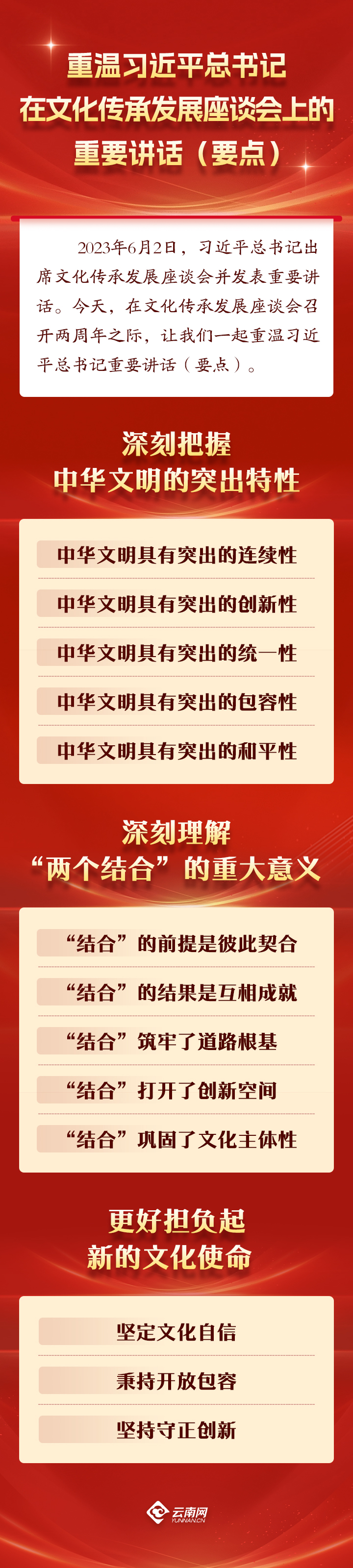 2023年6月2日,习近平总书记出席文化传承发展座谈会并发表重要讲话。今天,在文化传承发展座谈会召开两周年之际,让我们一起重温习近平总书记重要讲话(要点)。全文,戳链接→《习近平:在文化传承发展座谈会上的讲话》