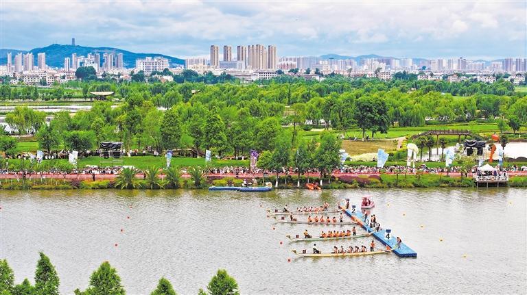 5月31日,麒麟区举行第三届龙舟赛,来自市、区各单位和麒麟区各镇(街道)以及部分社会团体等组成的36支队伍在麒麟水乡乘风破浪,上演“速度与激情”。